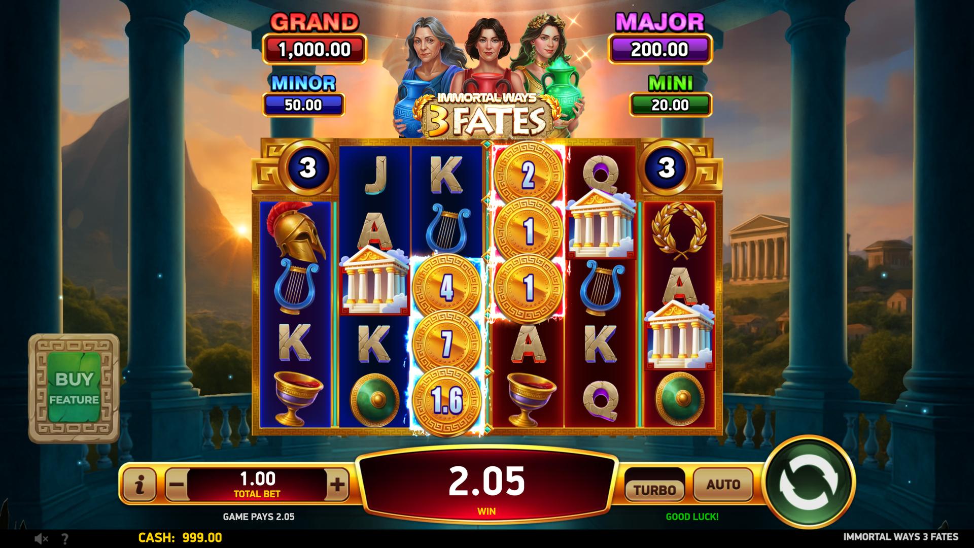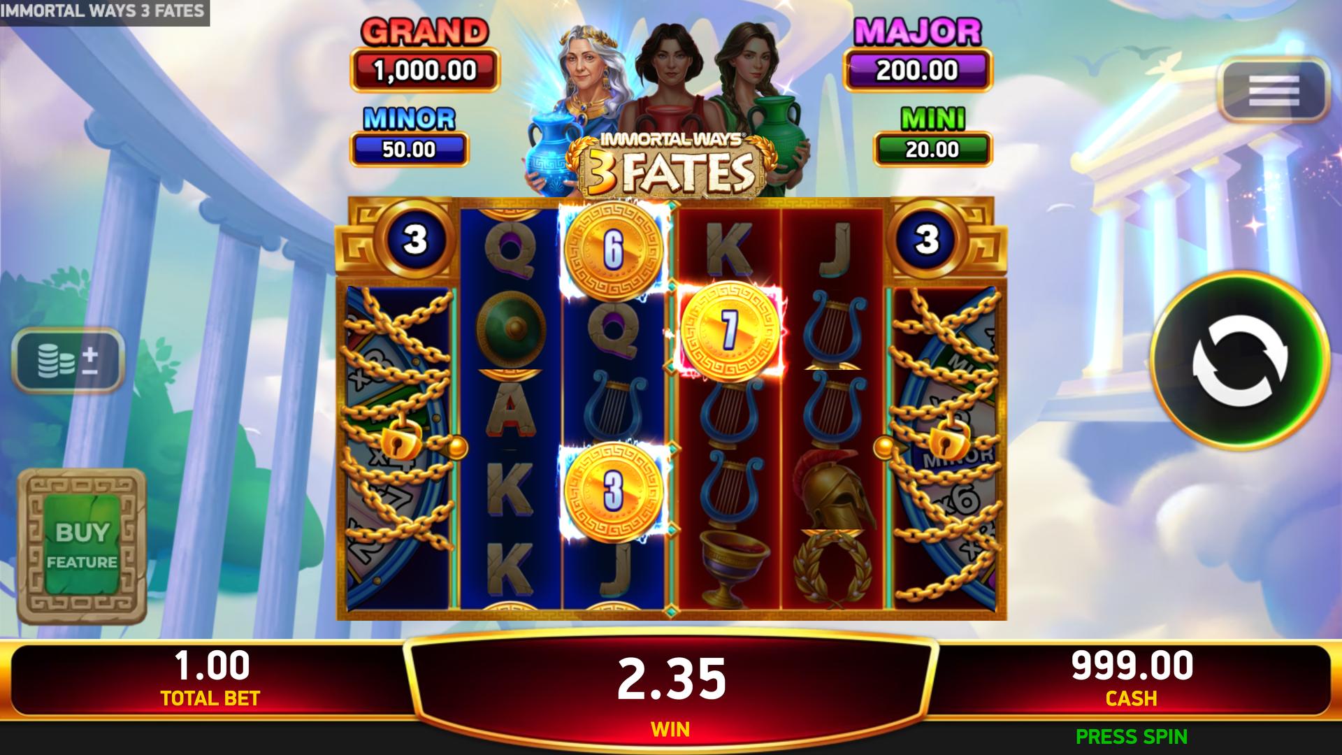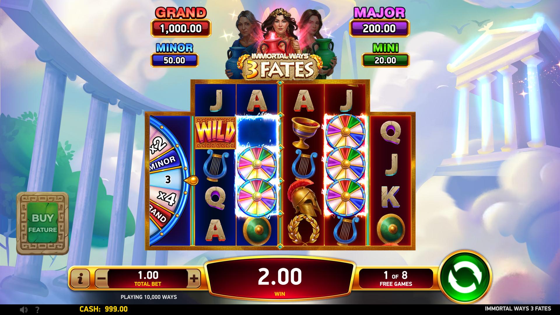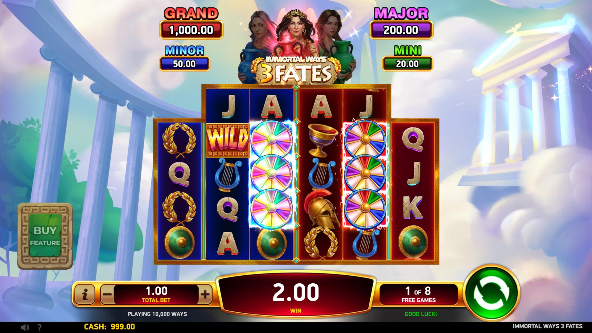 With sticky Coins, fate-shifting features, and serious jackpot potential, Immortal Ways® 3 Fates keeps every spin one step away from an immortal win.