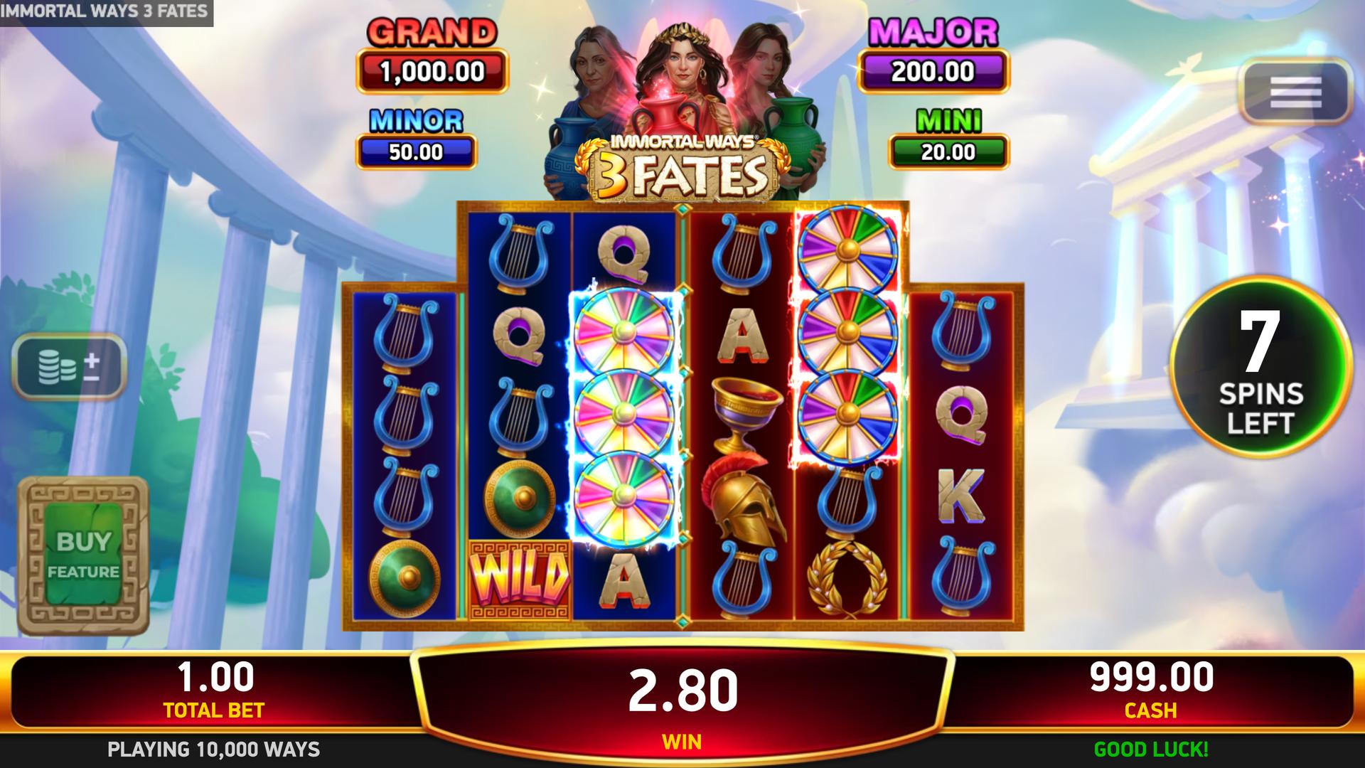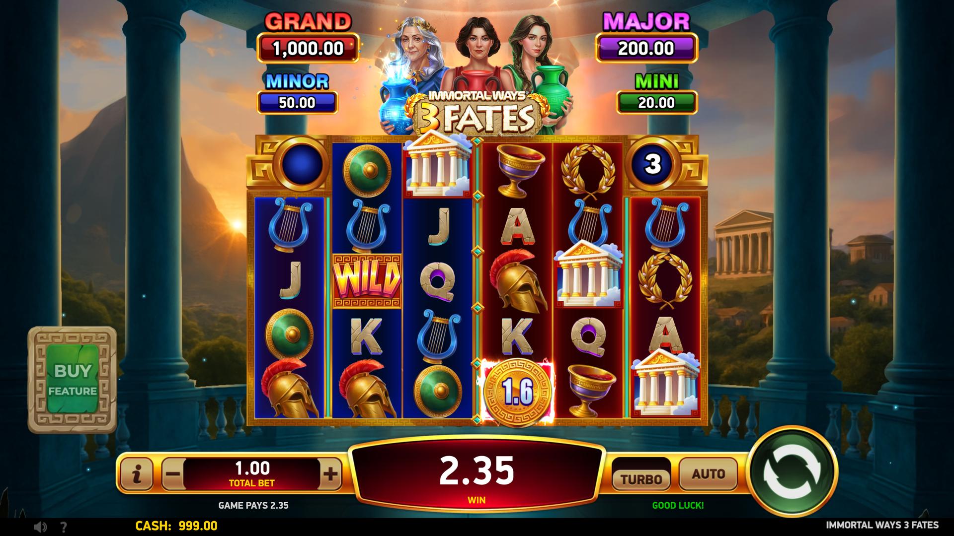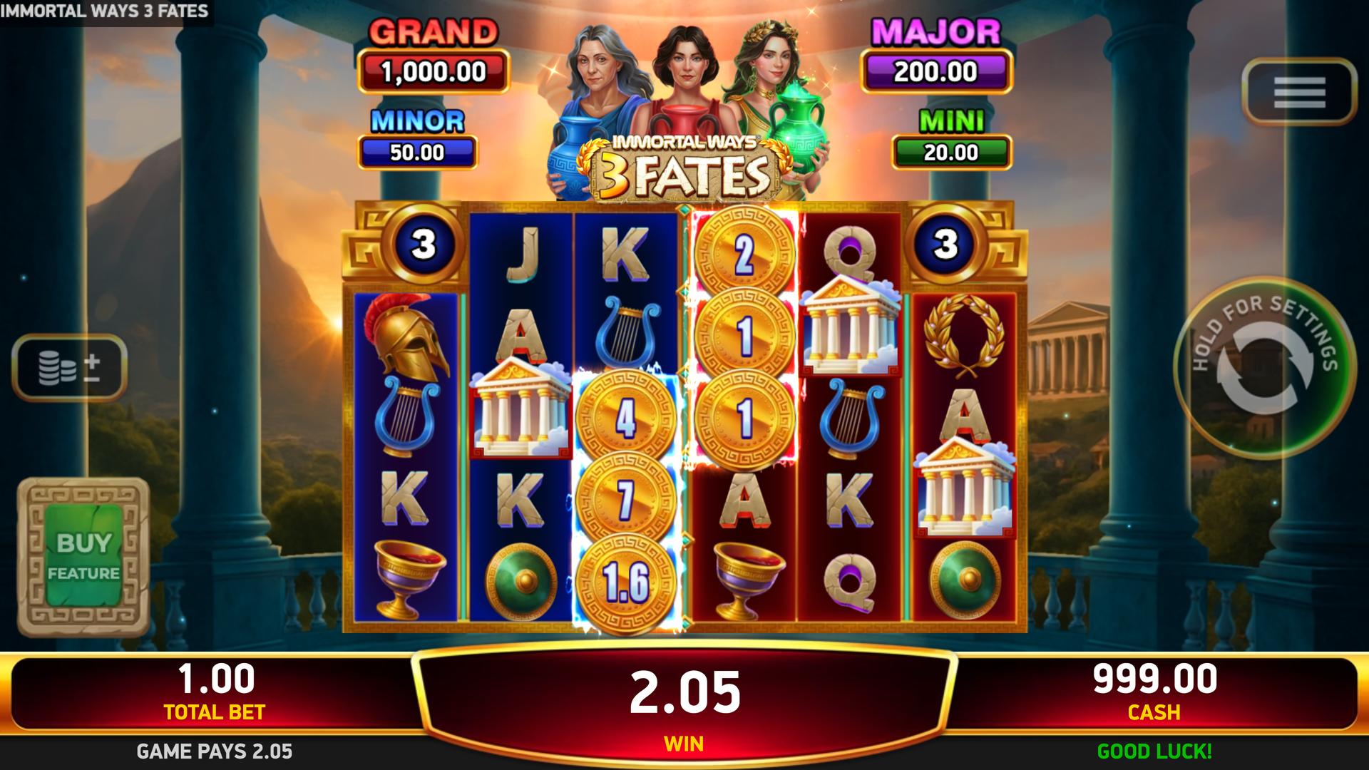 With sticky Coins, fate-shifting features, and serious jackpot potential, Immortal Ways® 3 Fates keeps every spin one step away from an immortal win.