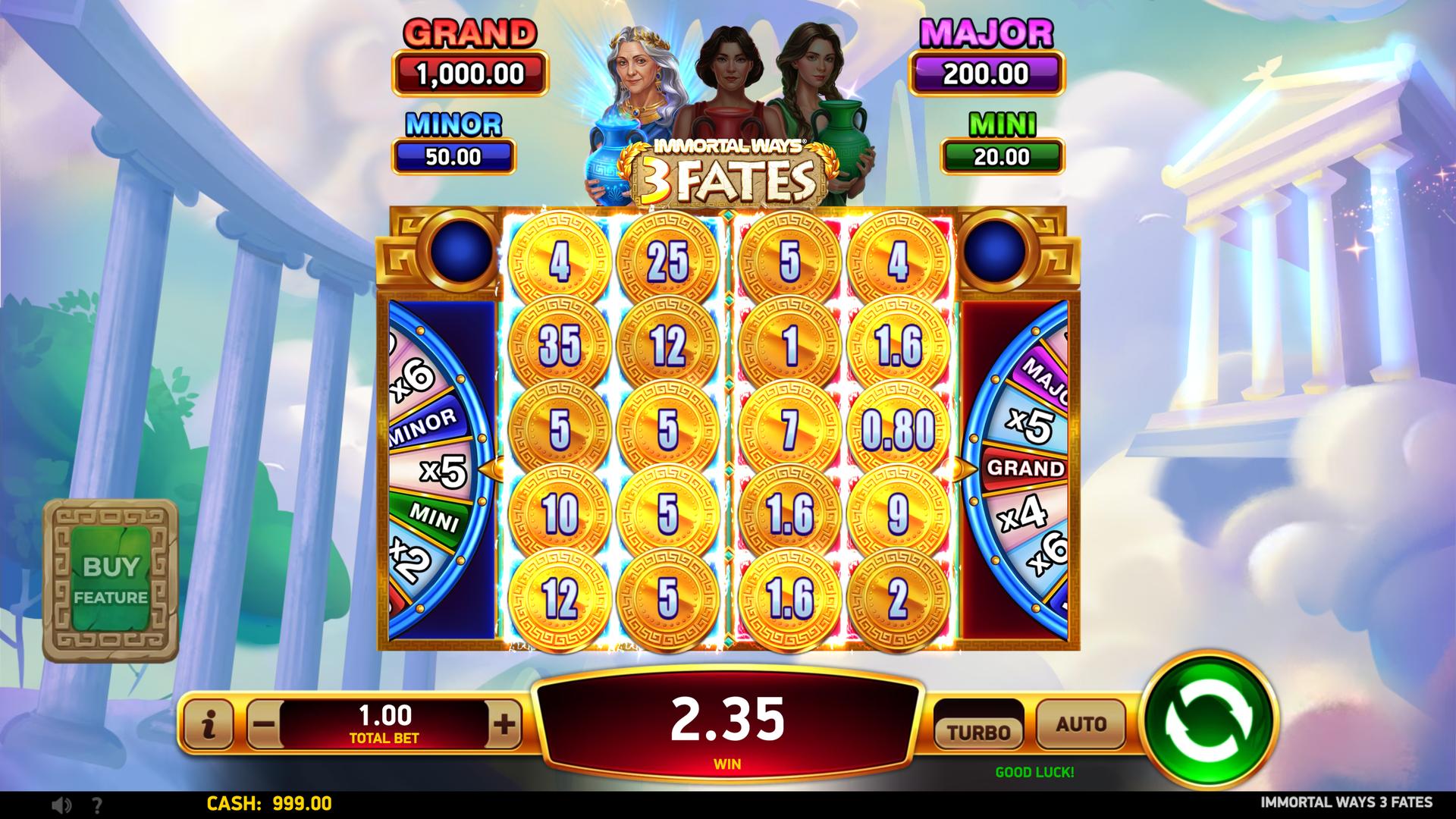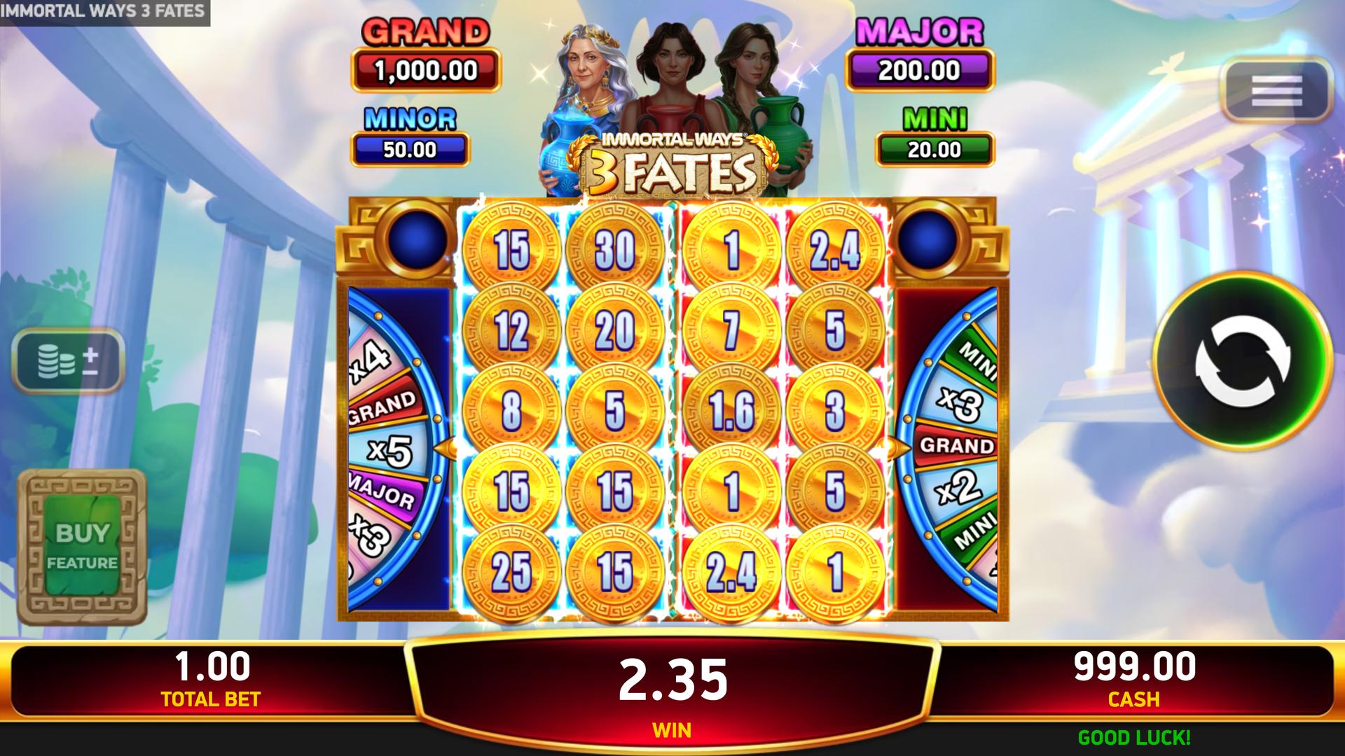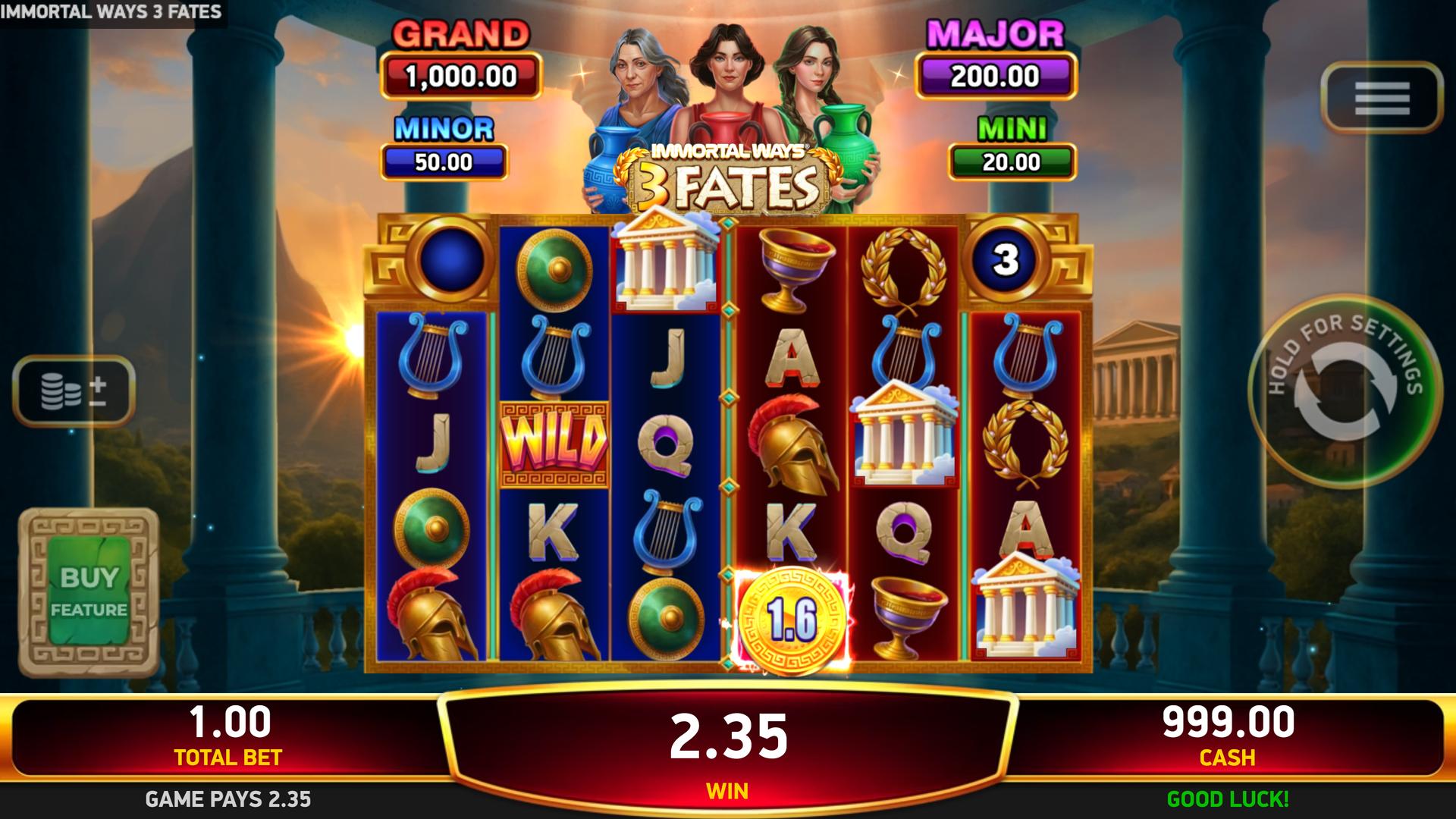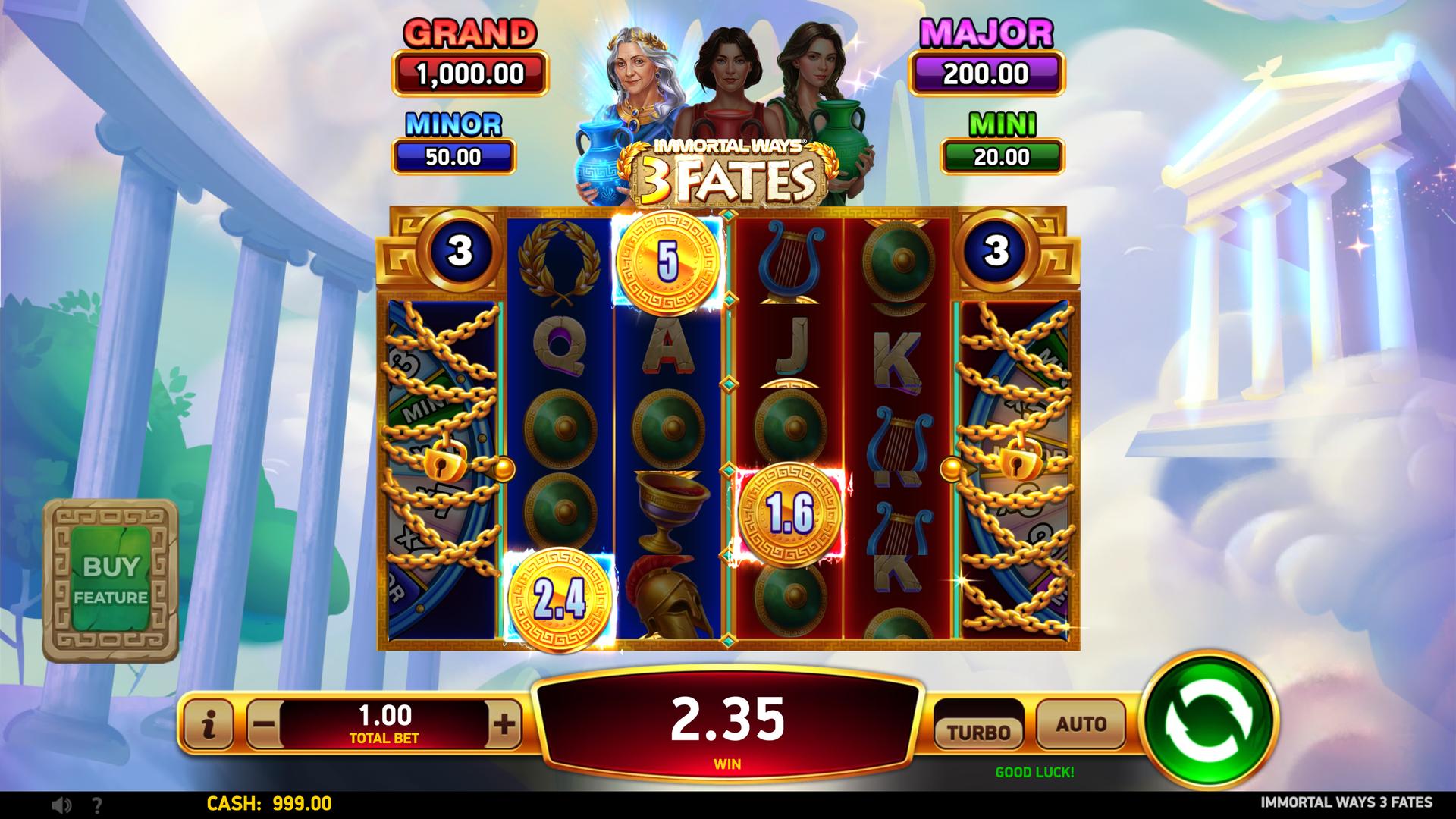 With sticky Coins, fate-shifting features, and serious jackpot potential, Immortal Ways® 3 Fates keeps every spin one step away from an immortal win.