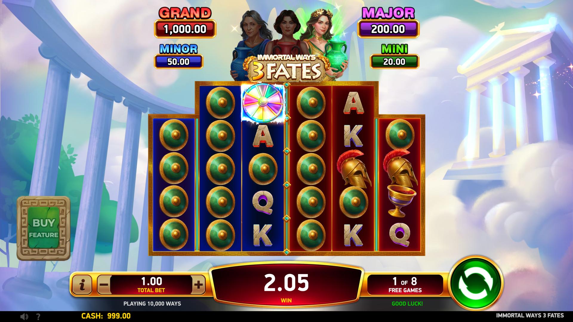 Enter the legendary world of Immortal Ways® 3 Fates, a 6-reel slot with 10,000 Ways to Win, two Immortal Arrays, and three headline features: Wheel Free Games, Mirroring Free Games, and the high-impact Immortal Respin.