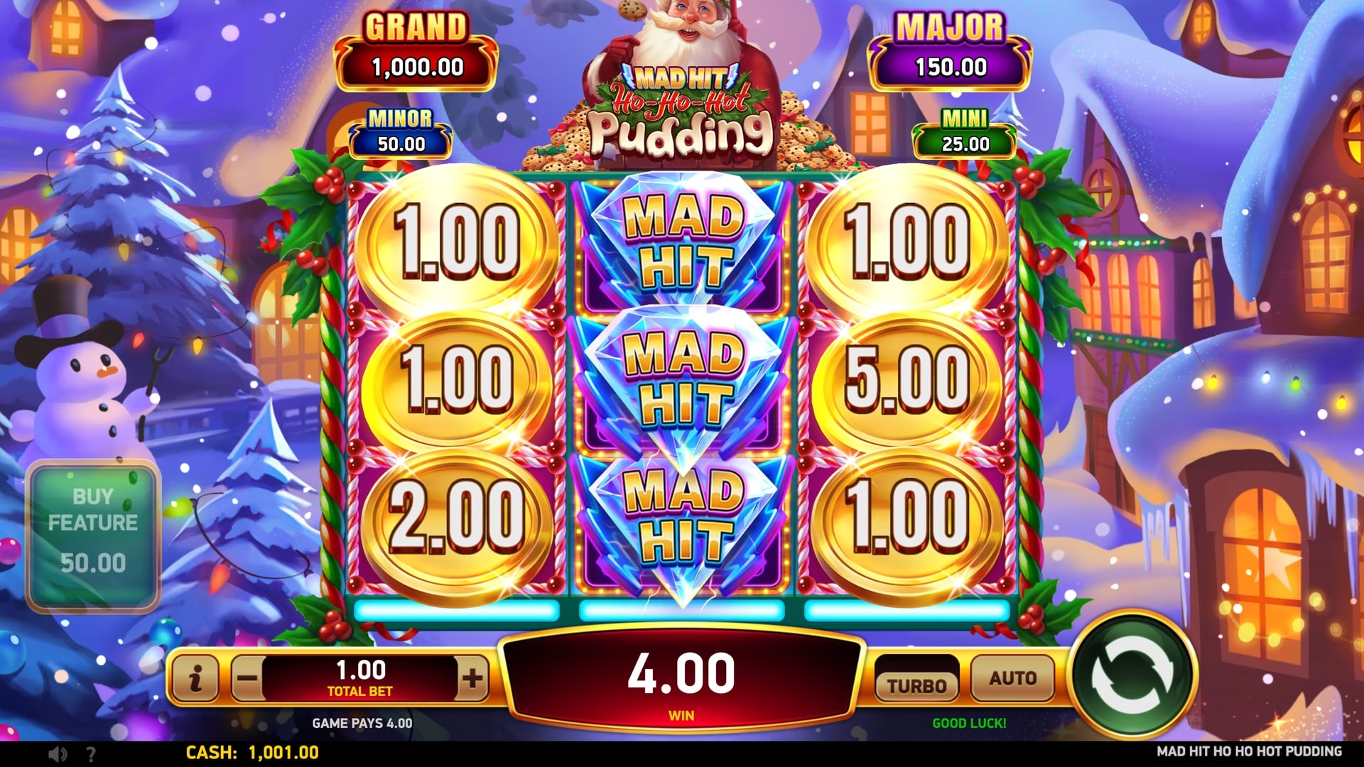 Instantly trigger the Mad Hit Collect and Win feature from the base game by purchasing it for 50x the current total bet.