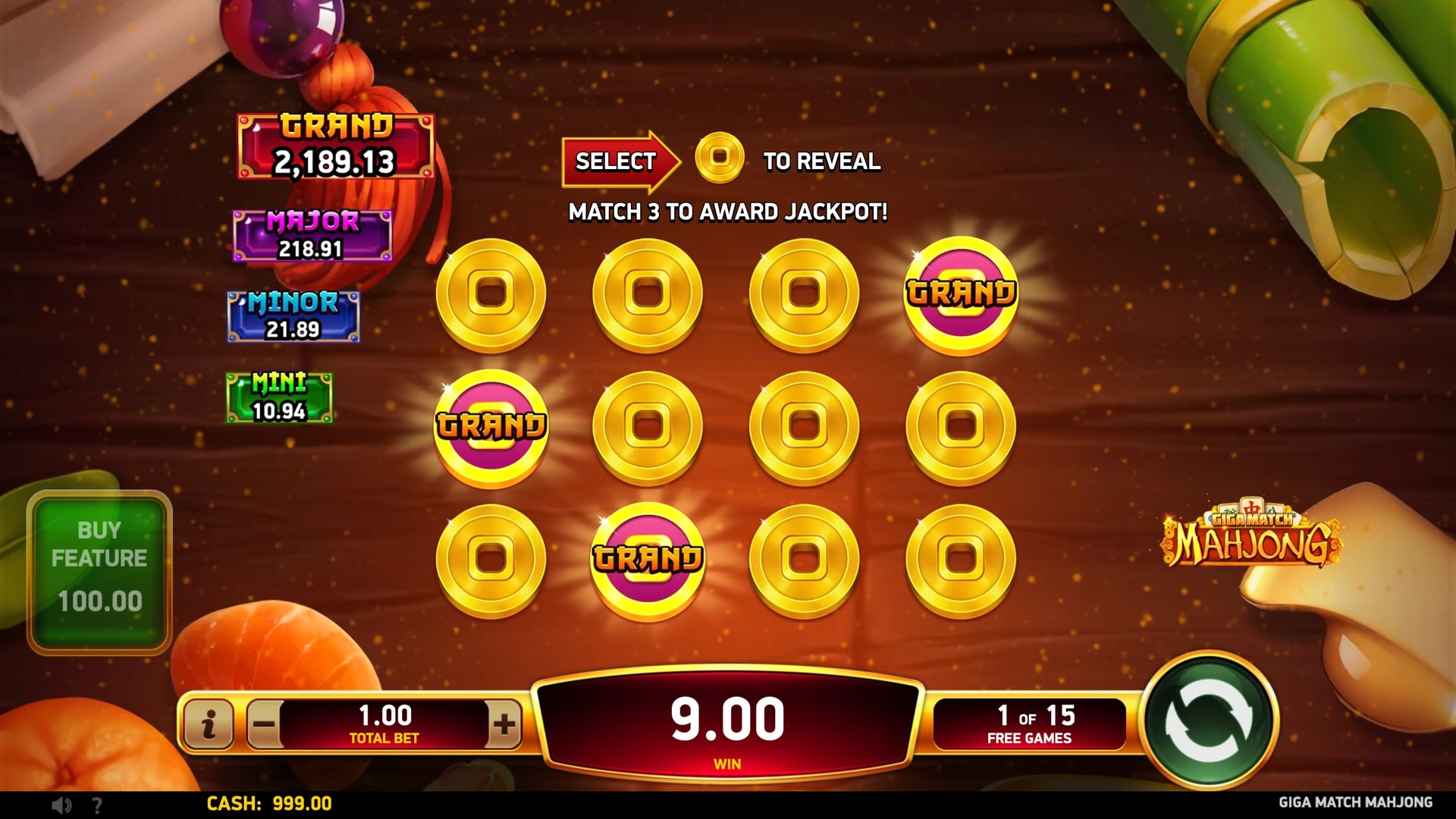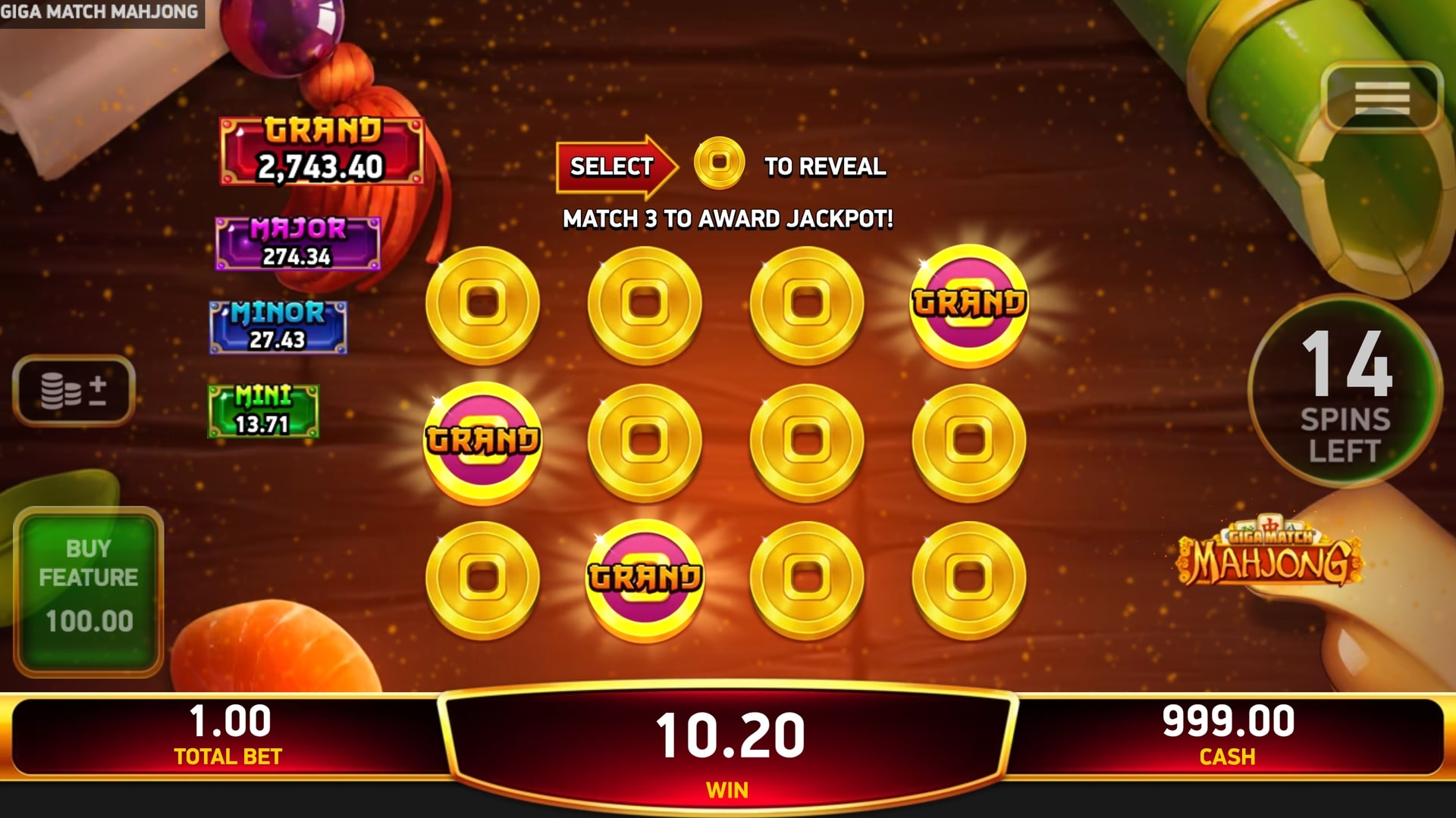 Após cascatas consecutivas, o Match Blitz é ativado, oferecendo a chance de reivindicar os prêmios Mini, Minor, Major ou Grand, começando em x2000 e chegando até x20000! Escolha entre 12 peças douradas e revele os prêmios correspondentes para ganhar muito.