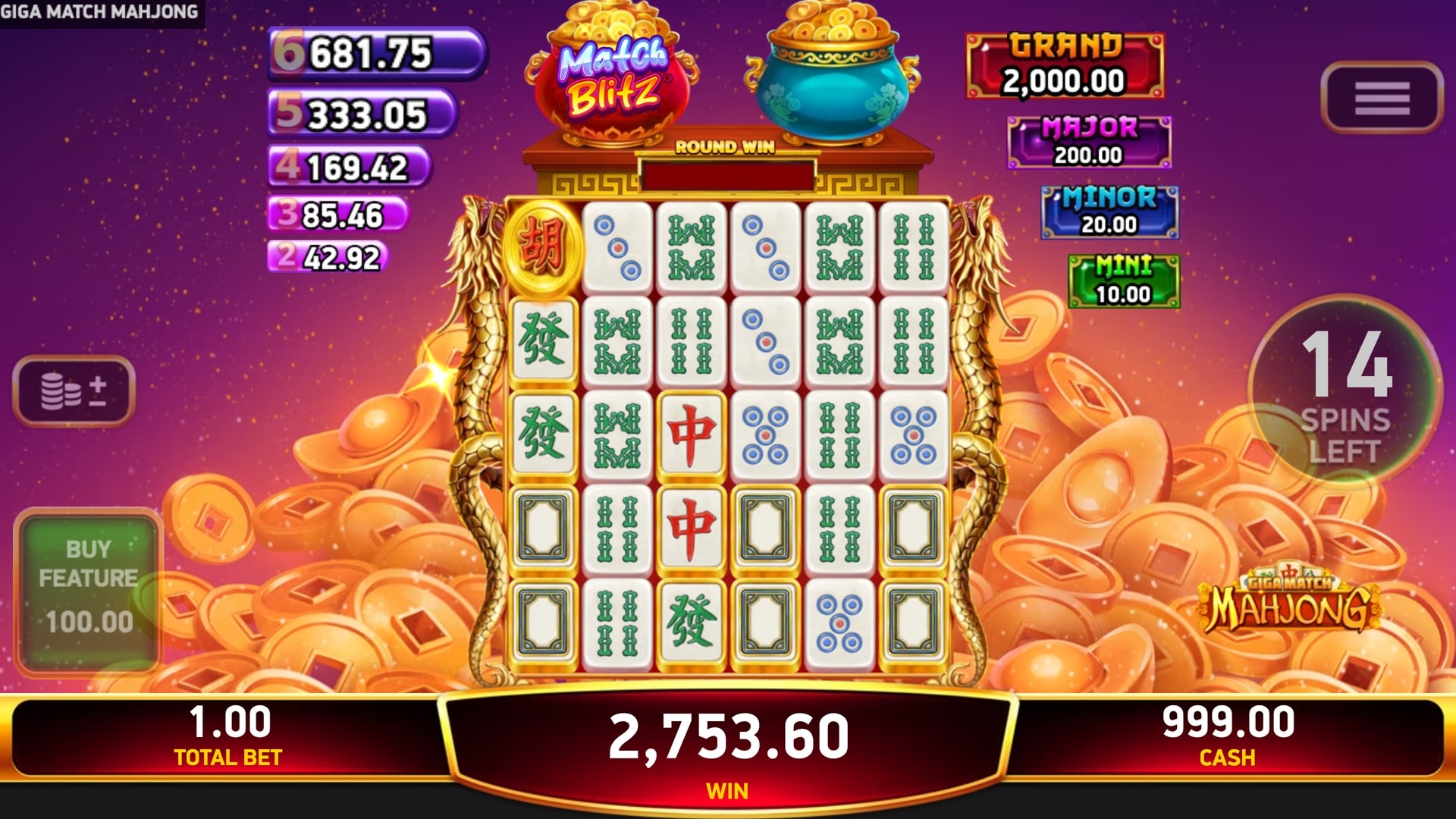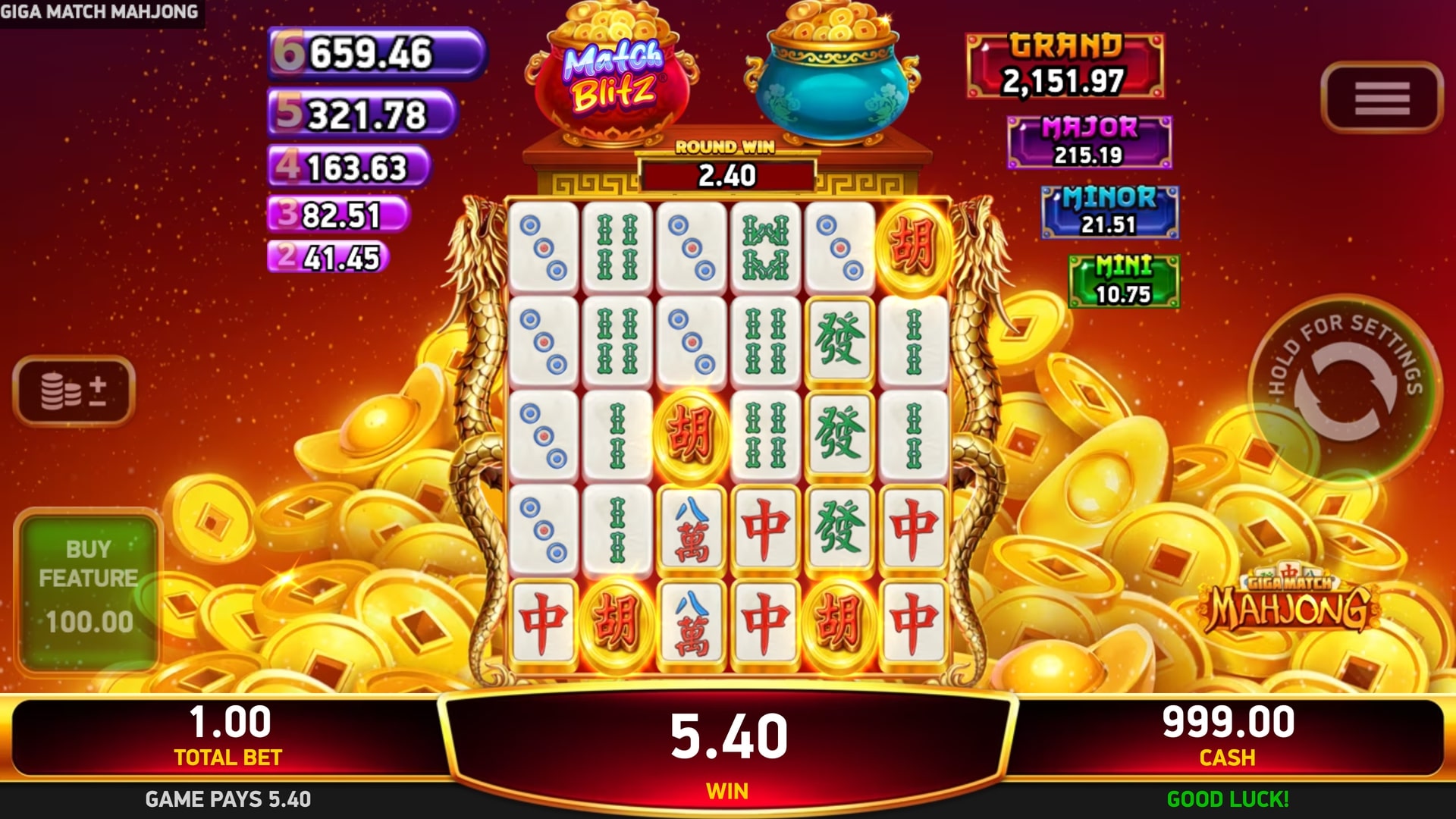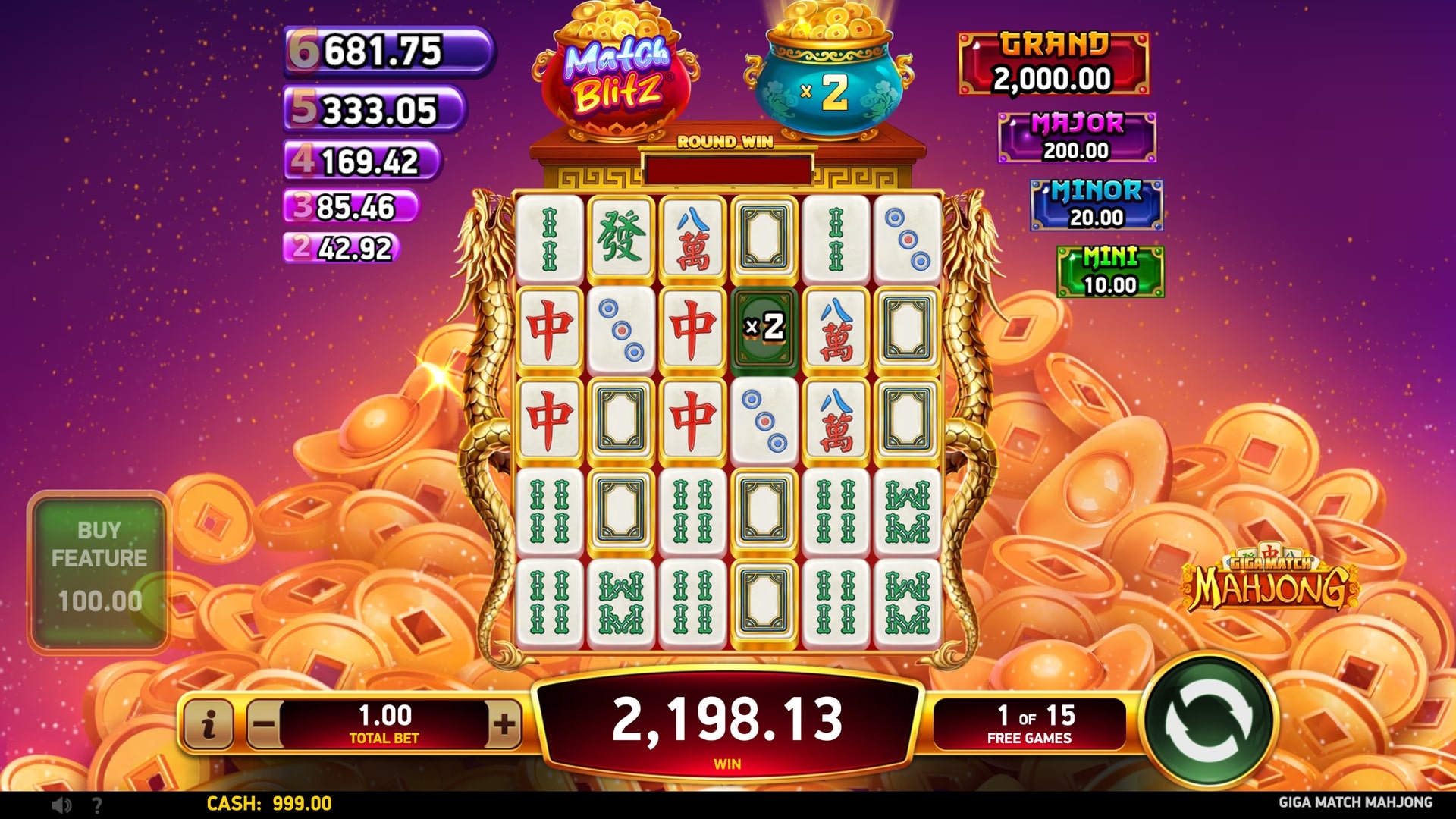 Entre no mundo dourado do Giga Match® Mahjong, um caça-níqueis de 6 colunas, em que Ganhos em Cascata, multiplicadores crescentes e o emocionante recurso Match Blitz criam um caminho para a fortuna.
