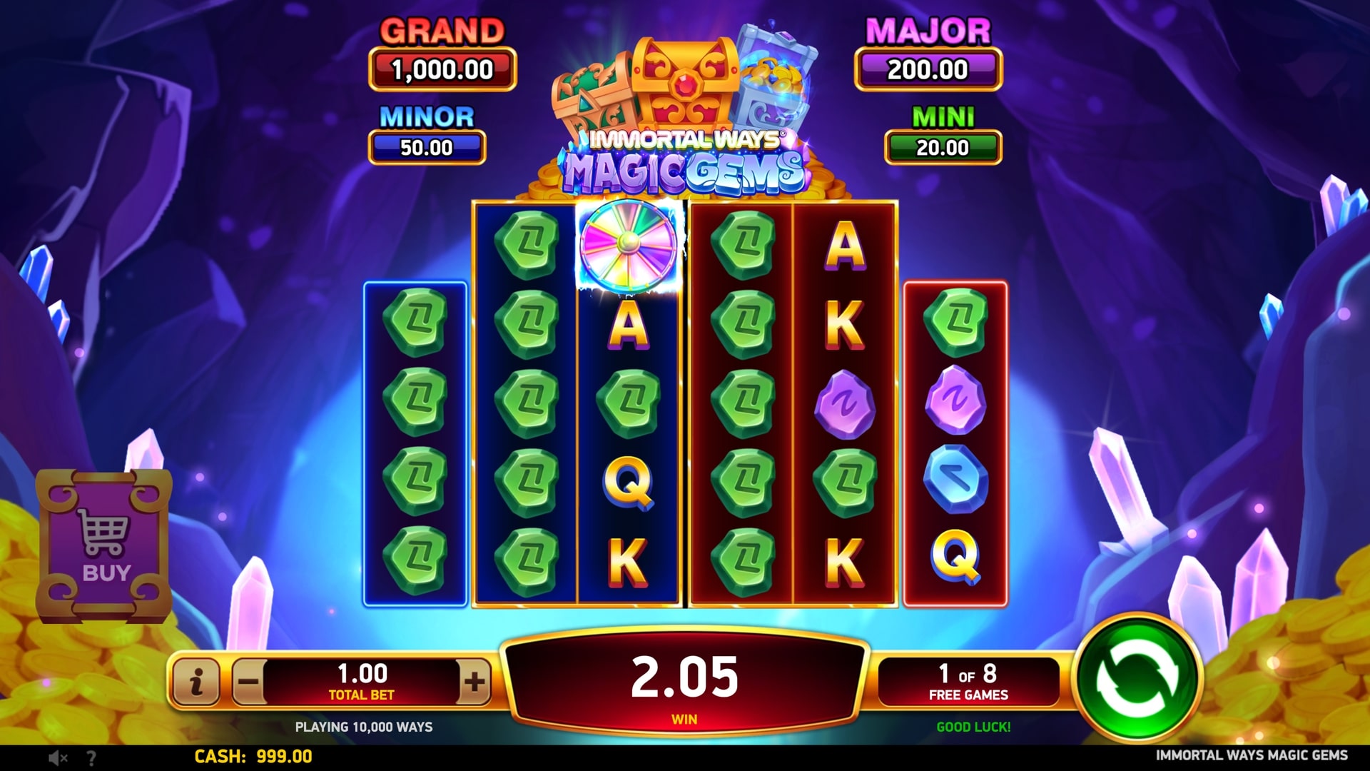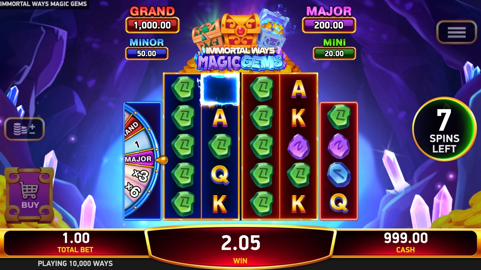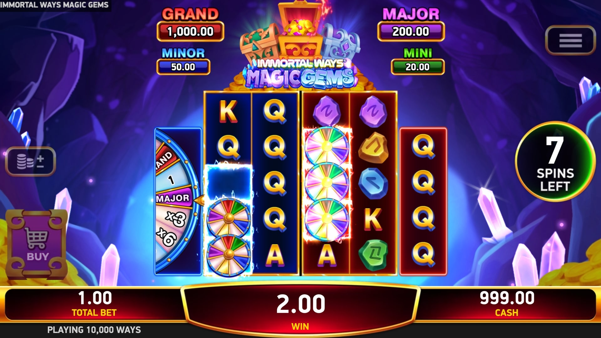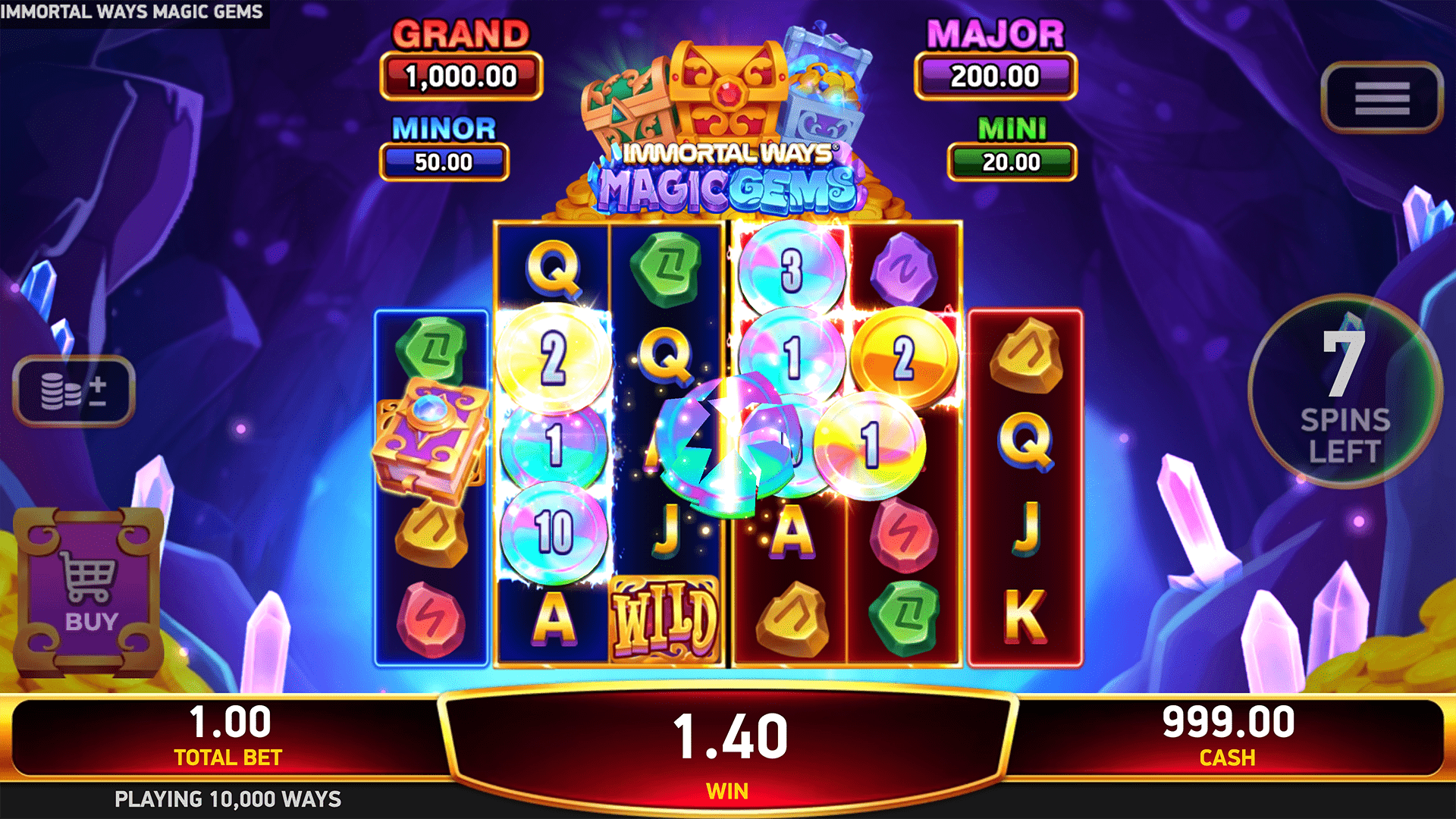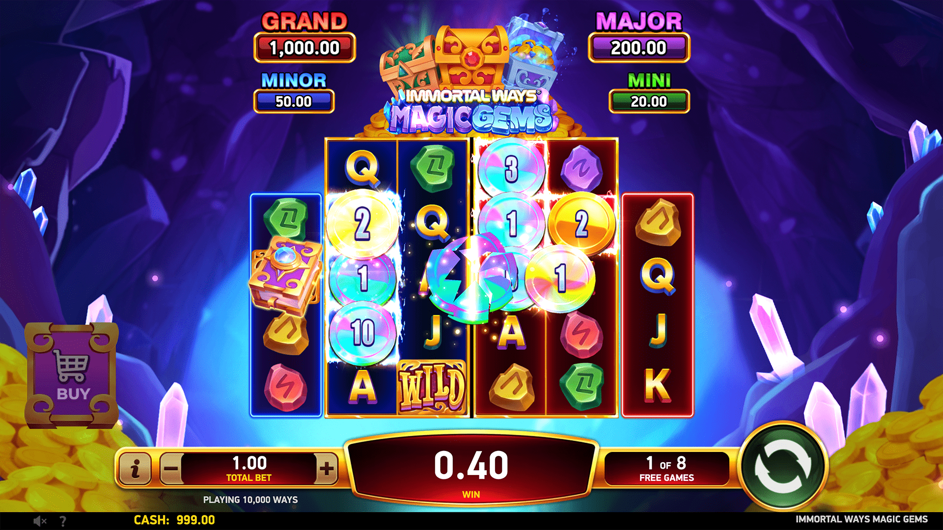 Repleto de prêmios que ficam fixos, magia espelhada e potencial de jackpot, Immortal Ways® Magic Gems transforma cada rodada em uma chance incrível de ganhos lendários!