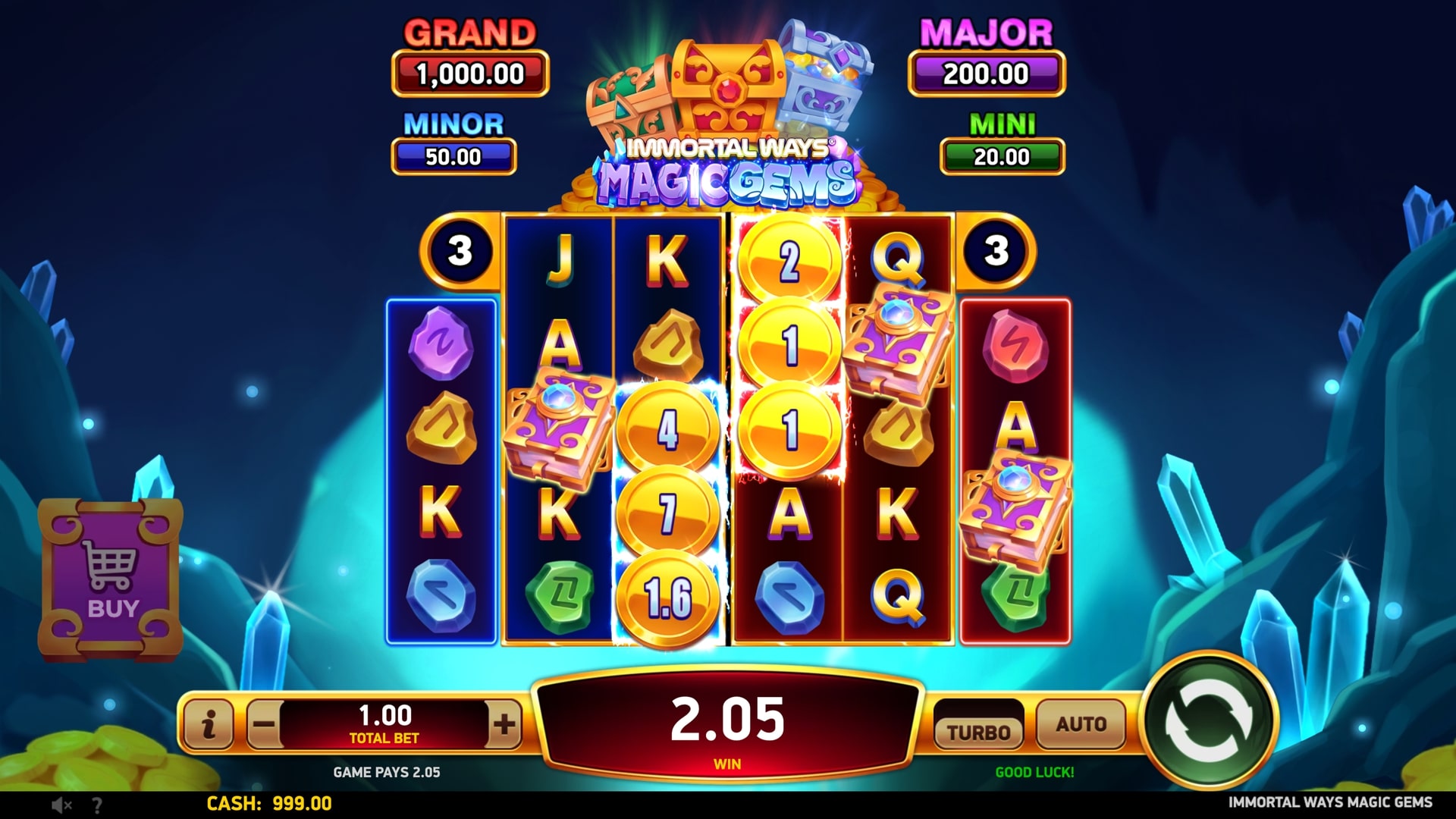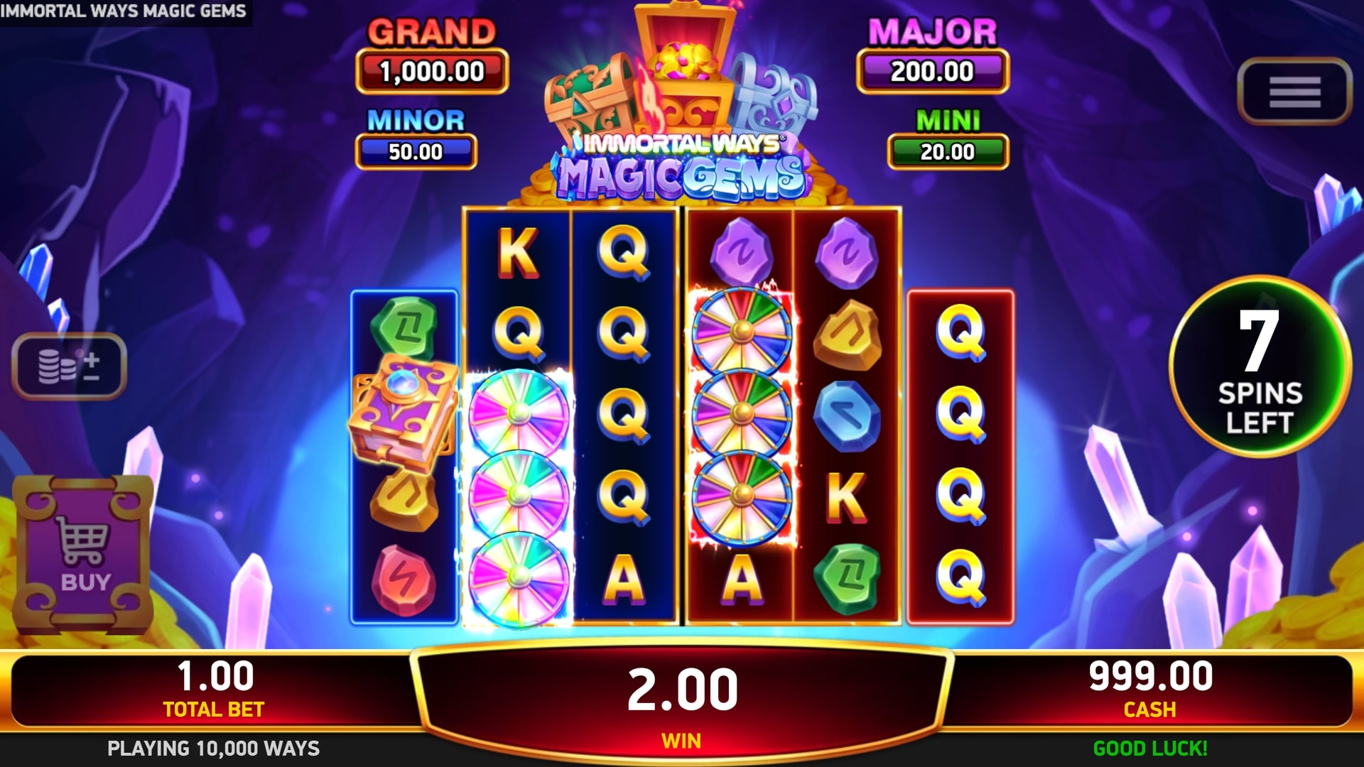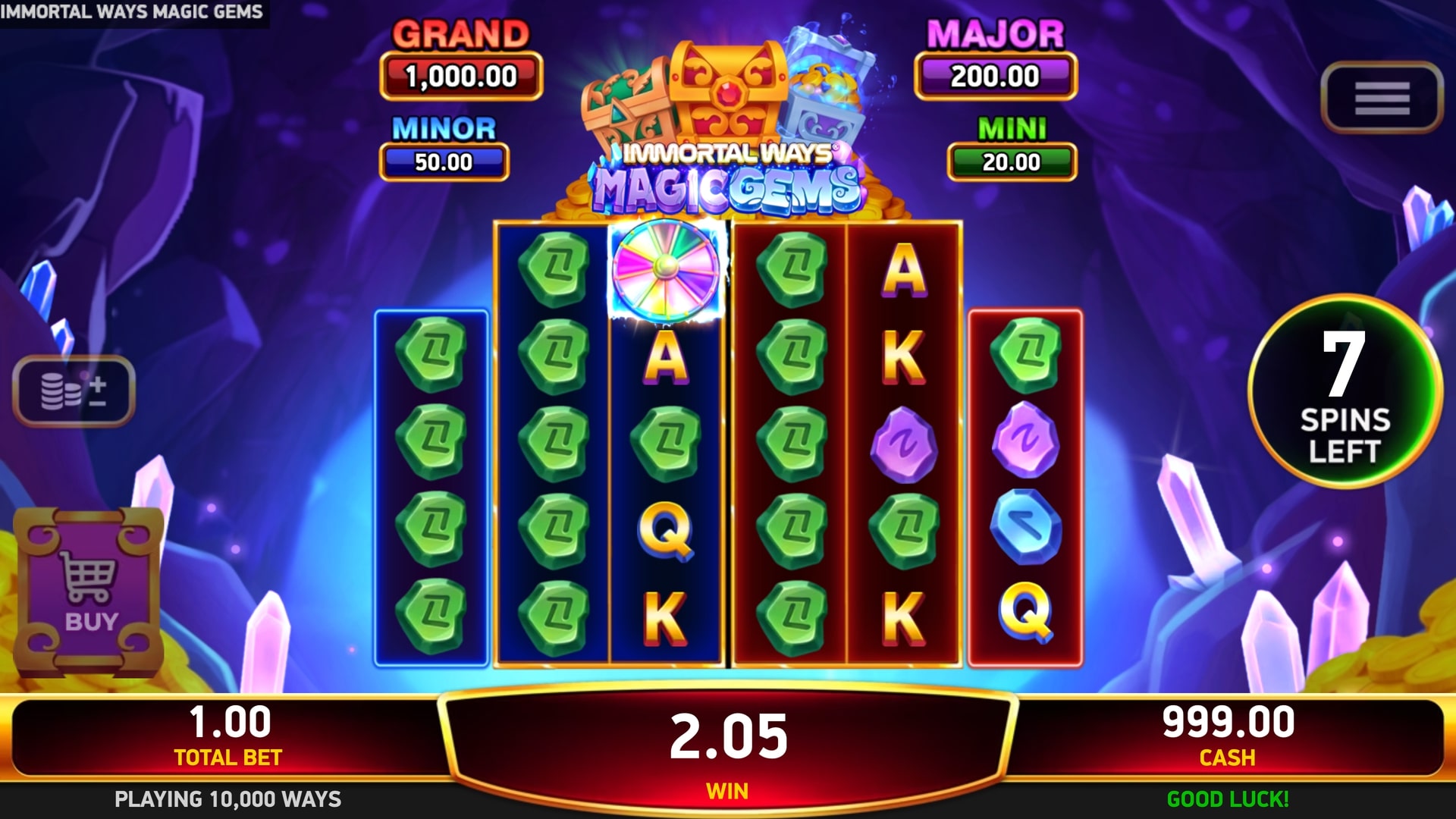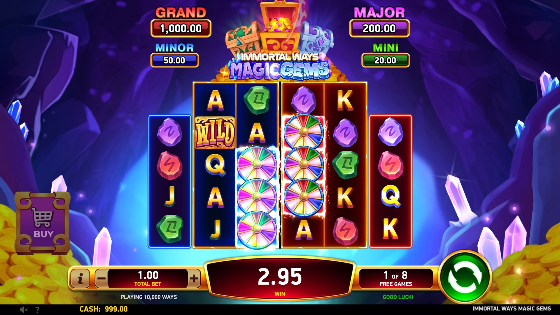 Repleto de prêmios que ficam fixos, magia espelhada e potencial de jackpot, Immortal Ways® Magic Gems transforma cada rodada em uma chance incrível de ganhos lendários!