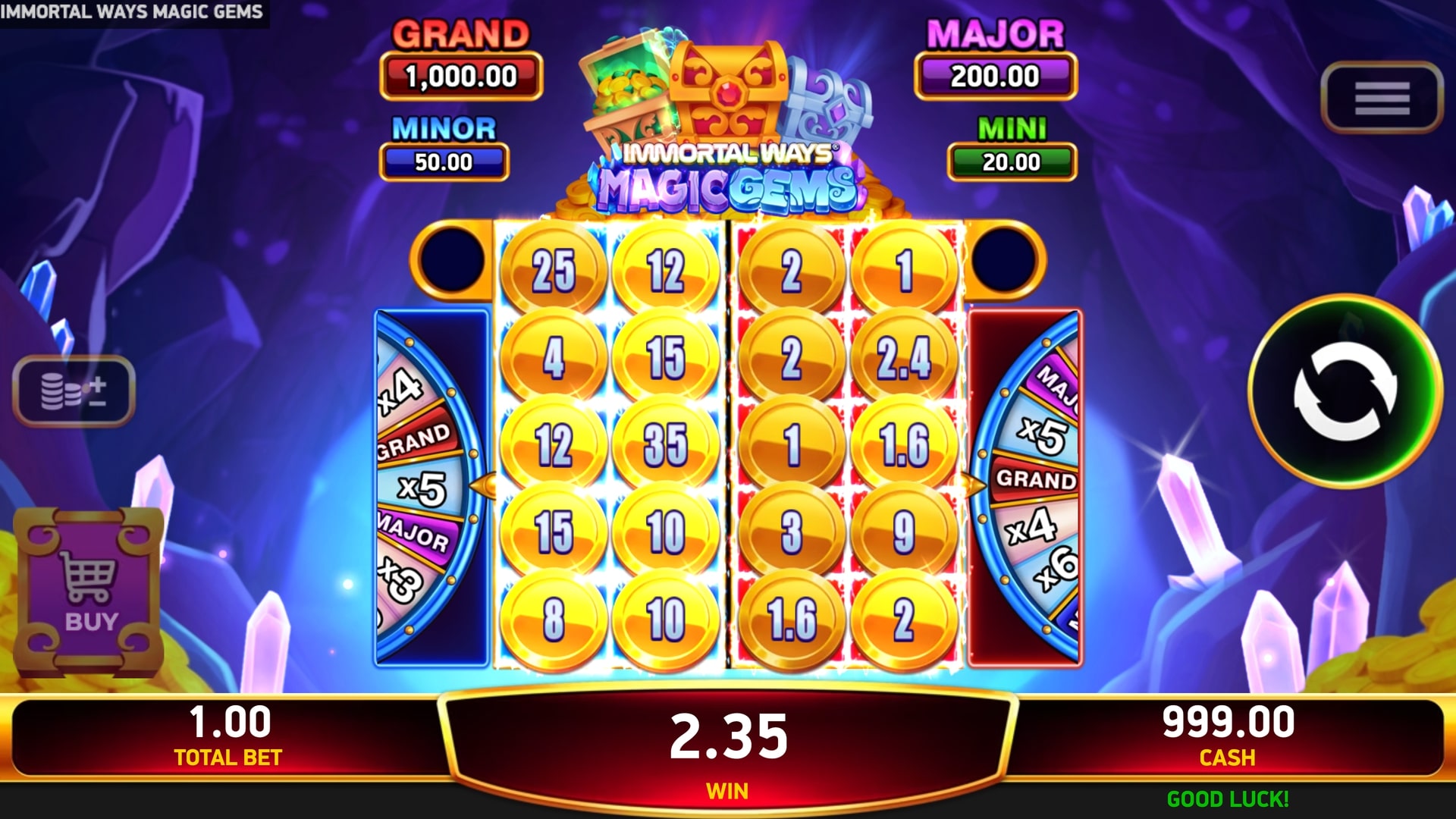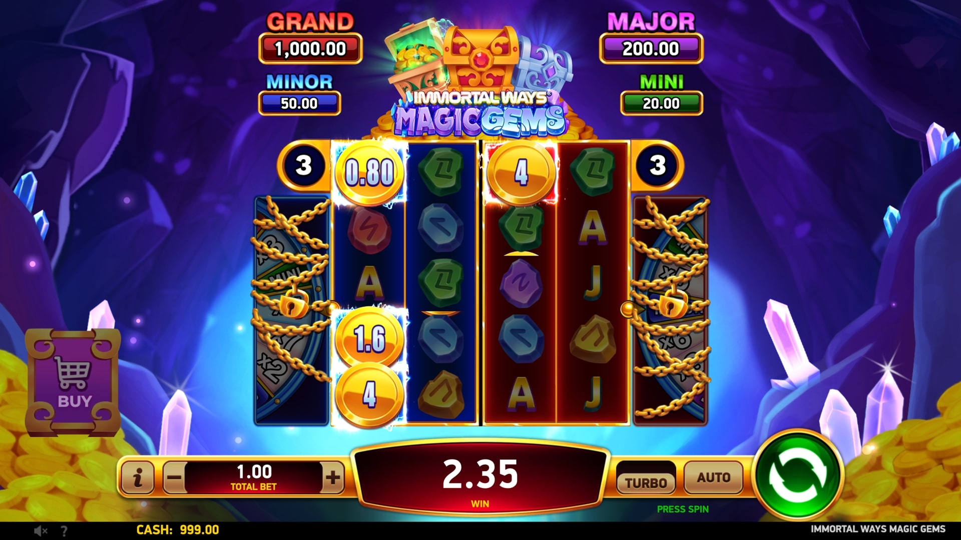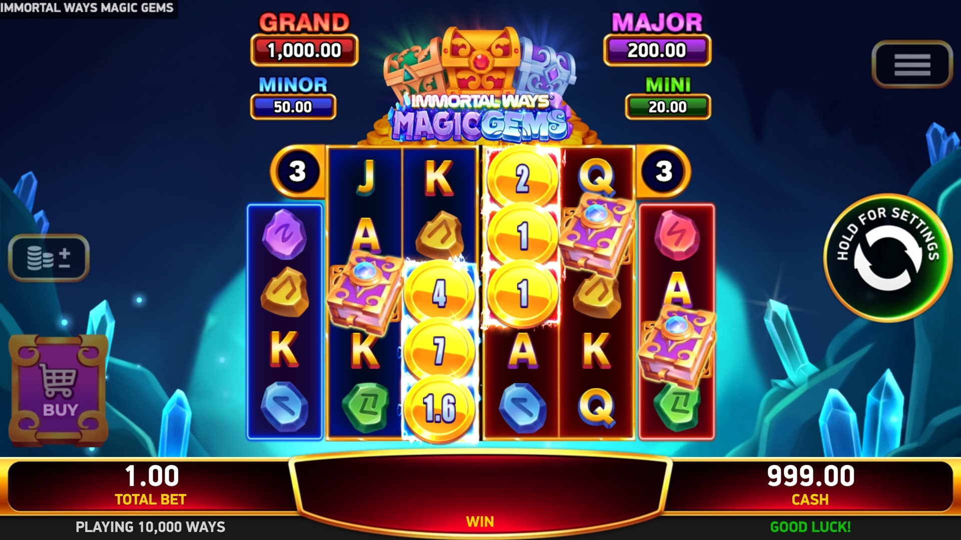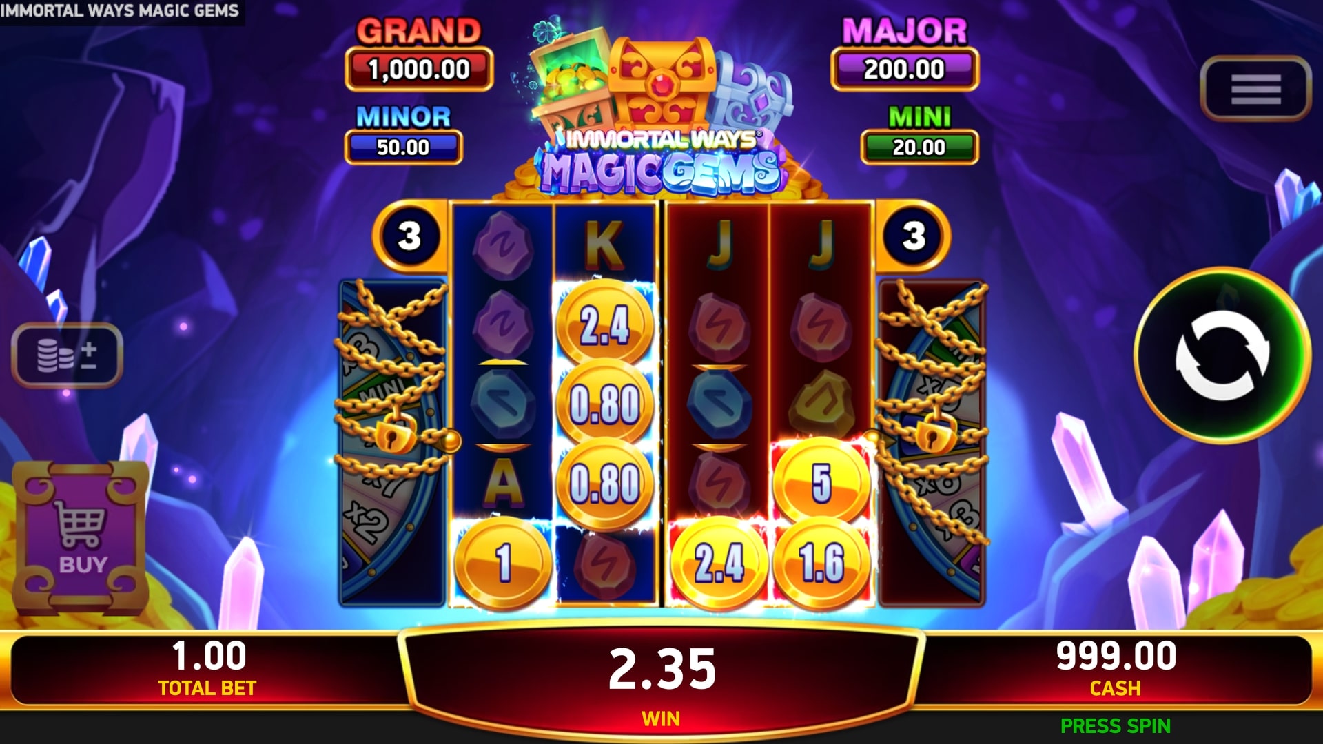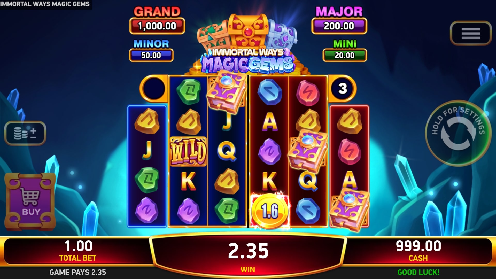 Repleto de prêmios que ficam fixos, magia espelhada e potencial de jackpot, Immortal Ways® Magic Gems transforma cada rodada em uma chance incrível de ganhos lendários!